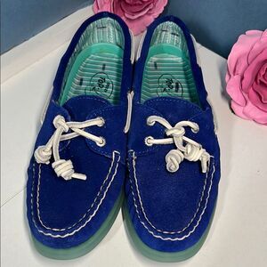 NWOT Sperry Too-Sider Blue Suede Boat Shoes Women's Size 8M