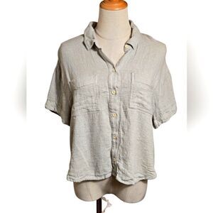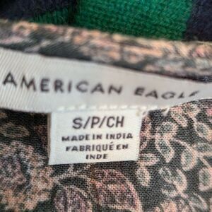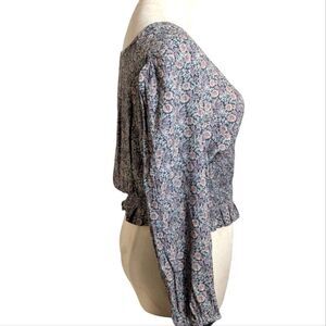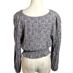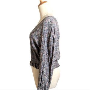 American Eagle Floral Cinched Waist Long Sleeve Cropped Boho Top
