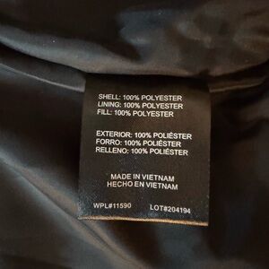 Stylish quilted vest with a hood. Features a tan color with black accents. Perfect for layering.