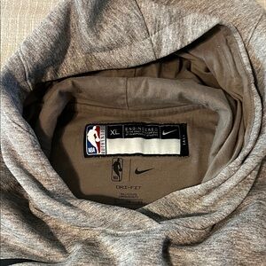 Cozy gray hoodie with Portland Trail Blazers text. Features Nike logo.