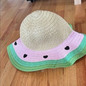 Colorful Watermelon Straw Sun Hat with Heart Accents