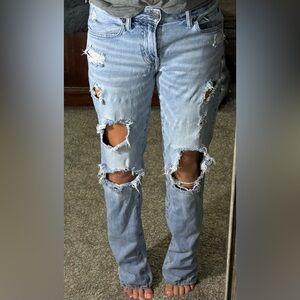 American Eagle Outfitters Ripped Light Blue Boyfriend Jeans