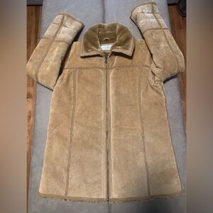 Jones New York Sport Womens Tan Genuine Suede Leather Faux Fur Lined Coat Large