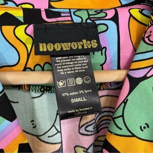Nooworks Leah Dreyfus Colorful Printed Fit and Flare Dress, size small. This is one of our longest running styles. Made with hidden pockets and a super stretchy waist band, this dress will hit you just where you want it. Don't let the flat measurements fool you, the waist on this dress is meant to stretch! Featuring artwork by Ashley Dreyfus + 95% Cotton/ 5% Spandex (Preshrunk Poplin) + Wet printed textile + Care instructions: Turn garment inside out, hand wash cold and line dry. + Made in California from start to finish Rare print in this style! Approximate measurements 35 in total length See last photo for brand size chart Smoke free home