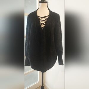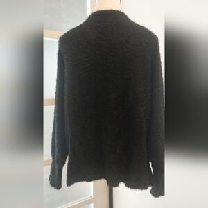 This chic black V-neck sweater offers both comfort and style. Ideal for layering or wearing on its own. It has no size , the measurements are in the photo