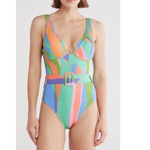 Hutch Multicolor Belted One Piece belted Swimsuit swim pink blue green small