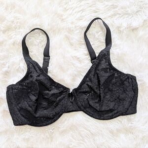 Black with a plunge neckline, collar, single button closure, and 2 front pockets.