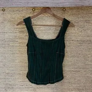 Chic dark green tank top. Perfect for layering or wearing alone. Adds elegance to any outfit.