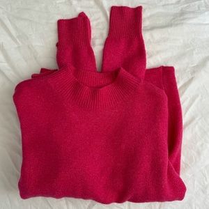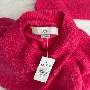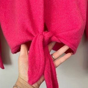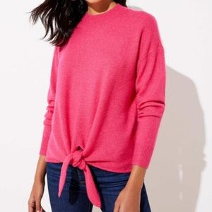▫️Ann Taylor Loft Pink Wool blend mock neck sweater featuring tie knot detail. Medium thick weight. There is stretch! Soft & comfy.