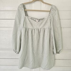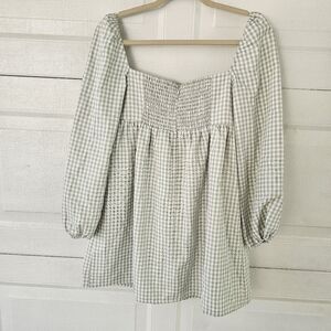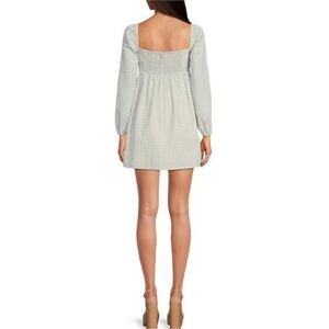 Gianni Bini Gingham Smocked Mini Dress Size 4 Green White Puff Sleeve Cottagecor