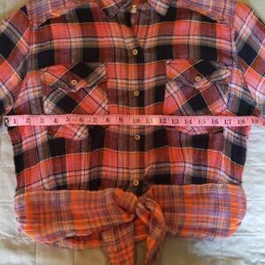 Free People We The Free Pink Orange Plaid Tie Front Western Shirt Medium