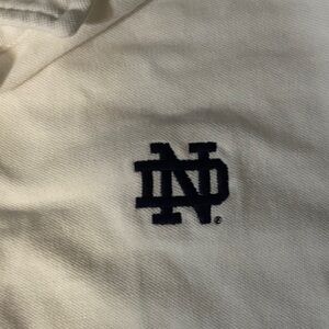 Johnie-O Notre Dame collaboration mens XL white polo with a classic embroidered logo. Ideal for versatile wear. Short sleeve.