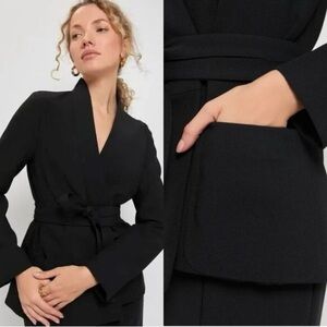 Sleek black puffer jacket. Ideal for cold weather. Features quilted design. Great used condition.