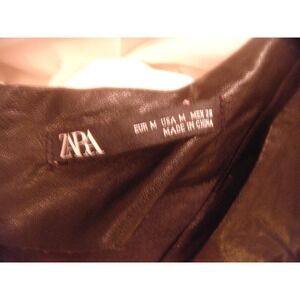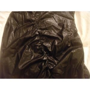 Zara womens M black faux leather rouched 3/4 sleeve mini dress v-neck