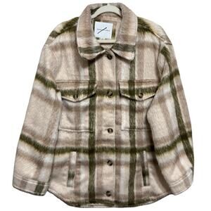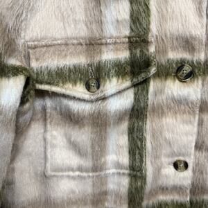 American Eagle Fuzzy Shacket Women’s L Ivory Plaid Heavy Wool Blend Oversized