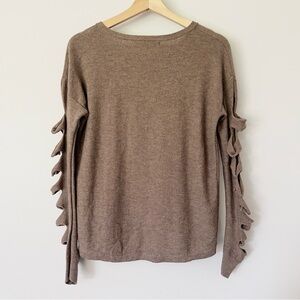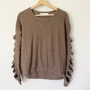 One Grey Day Sweater Size M Round Neck Long Sleeves Cut-Outs Brown Taupe Wool