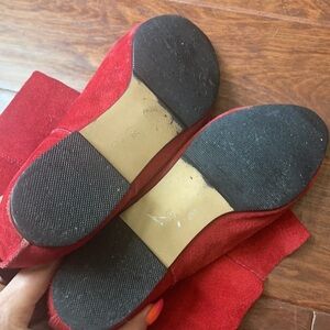 Vintage, tall boots, round toe, flats, fall, comfortable, leather, red, folded, winter, whimsygoth, trendy, soft, pull on