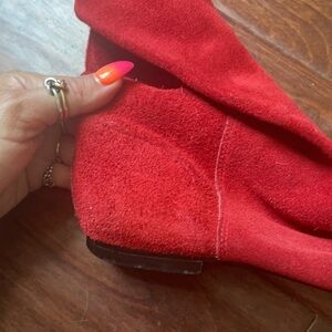 Vintage Red leather boots flats round toe soft folded or unfolded tall boots