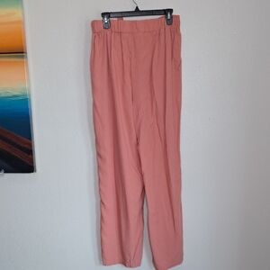 Thread & Supply Wide Leg Pants Lyocell Coral Pink Tie Waist Sz Large Inseam 30"