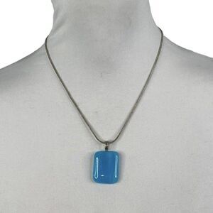 Silver Tone Necklace with Blue Retangle Pendant Slide on Chain 17” 3” Extender
