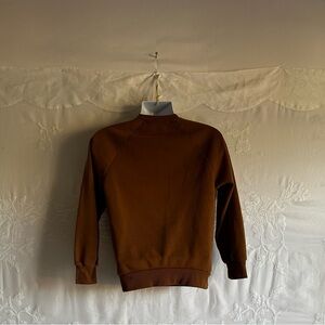 Embrace the wild with this stylish brown sweater featuring a striking wolf print. Perfect for adding a unique touch to your wardrobe. PREOWNED