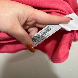 size xl. great gently used condition. heather coral in color, crewneck neckline, relaxed and comfortable material (recycled polyester/polyester/spandex blend).