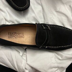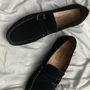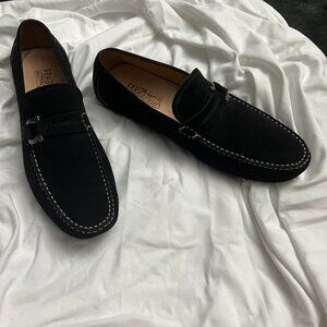 MEN'S SALVATORE FERRAGAMO BLACK SUEDE DRIVERS SIZE US 11 DUBLO 2 NERO BUC SUEDE