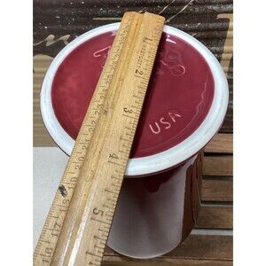 The Fiesta Pottery 9.5" Monarch Flower Vase in Cinabar Maroon Glaze is a beautiful and decorative piece that embodies the Art Deco style. Crafted in the United States in the 21st century, this ceramic vase features a solid pattern with a stunning cinabar glaze. It is part of the Fiesta product line, known for its high-quality pottery production. This vase is perfect for adding a touch of artistry to any space with its unique design and elegant craftsmanship.
