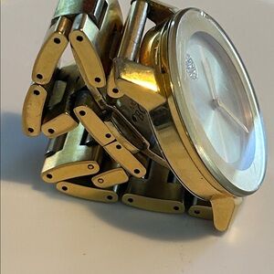Beautiful watch! Gold ion-plated stainless steel. Please see all photos and ask any questions: this is a used piece consistent with time that has a lot more life to it.