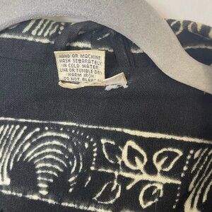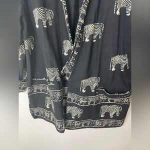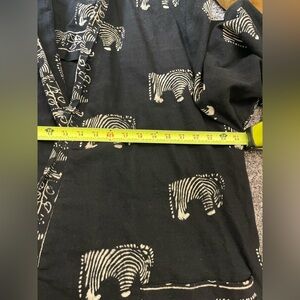 Vintage Boho Mudcloth Robe Poncho Kimono Safari Zebra Black Heavyweight Cotton L