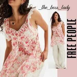 Free People button-down shirt floral eyelet lace boho top cotton blend