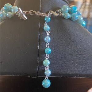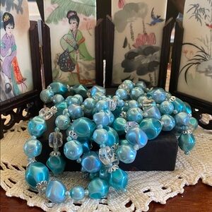 This stunning blue beaded necklace is perfect for adding a touch of elegance to any outfit. The vibrant blue beads are beautifully crafted, making it a standout piece in your jewelry collection. The Ab is glass. Signed Western Germany with Silk tone accents. Excellent vintage condition.
