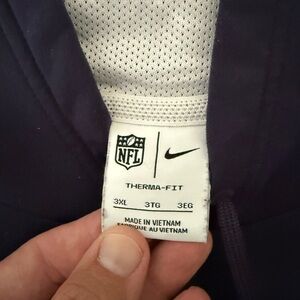 Dark blue Nike Therma Fit Dallas Cowboys On Field Collection hoodie. Features front pocket and drawstring hood. Comfortable fit 3XL.