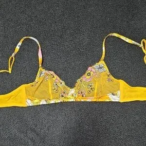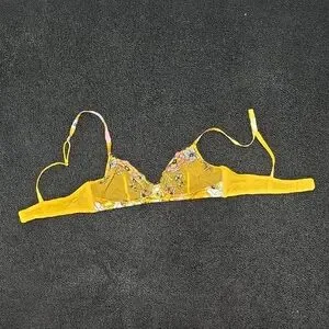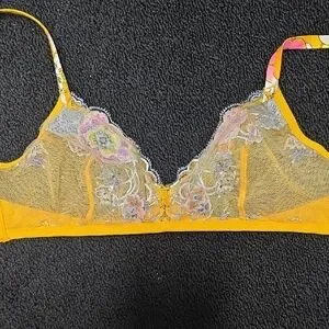 Elegant yellow lace bralette with floral details. Adjustable fit. There are no size tags. It is a 32C