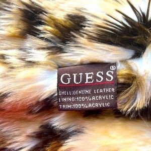 Guess Brown Leather Jacket with Animal Print Trim