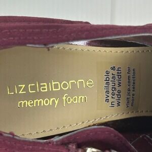 Elevate your wardrobe with these stylish Liz Claiborne women's ankle booties in a rich burgundy suede finish. Designed with memory foam insoles for all-day comfort, these heeled booties feature a side zipper closure with gold-tone accents and decorative back tie detail.