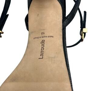 Larroude Penelope Ruffle Cracked Metallic Leather Heeled Sandals Black Size 10