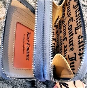 NEW WITH TAGS, IT'S JUICY COUTURE'S GORGEOUS VELOUR "DOUBLE MEDIUM ZIP AROUND WALLET" IN A BEAUTIFUL BLUE COLOR SCHEME WITH SILVER EMBELLISHED HARDWARE. SO CUTE!!