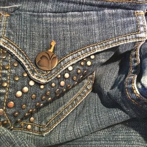 Fashion bug women’s knee length denim shorts with riveted design on back pockets. Clean, no stains. Very good used condition.
