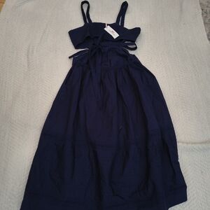 Vineyard Vines Navy Poplin Lace Insert Midi Dress