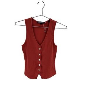 Veronica Beard 'Hoorne' Red Cotton Tank Size XS: the button-down hoorne features allover ribbing and an angled, cutaway hem, measurements: 14 inch bust x 19.5 inch length.