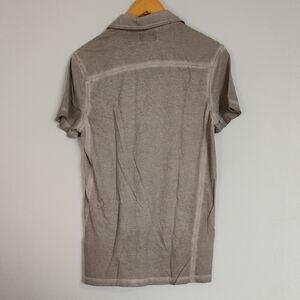 This Rock & Republic polo shirt in a smokey gray hue offers a timeless style with its classic collar and short sleeves. Crafted for comfort, it features a relaxed fit that makes it an ideal choice for casual occasions. The versatile color and design ensure it pairs effortlessly with various outfits. Please zoom in photos for the best description.