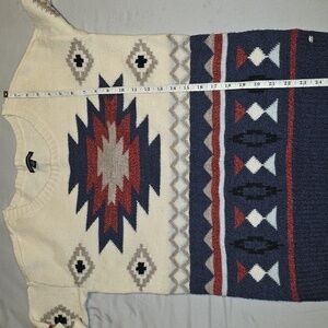 American Eagle Outfitters Cream and Navy Patterned Sweater