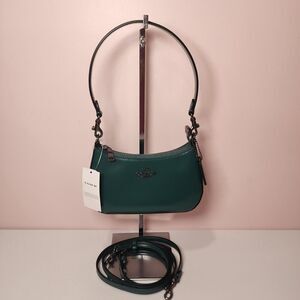 Detachable strap with 21 1/2" drop for shoulder or crossbody wear9 1/4" (L) x 5 1/2" (H) x 2 3/4" (W)