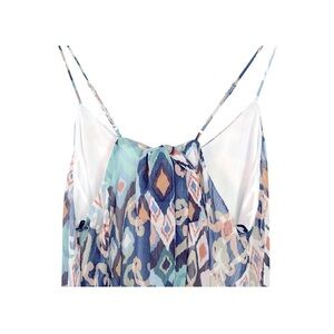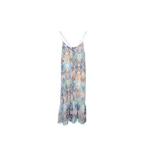 NWT Sleeveless Boho Ruffle Printed Woven Blue Green Cami Maxi Dress