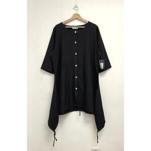 Mersea Catalina Slub Cotton Tee Oversized Boxy Coastal Side Slits 3/4 Sleeve OS
