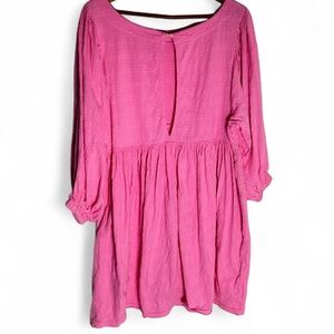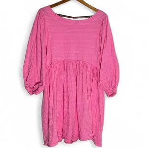 FP Beach by Free People Pink Boho Baby Doll Tunic Dress Balloon Sleeve Size M
