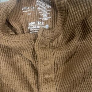 It’s a baby boy bundles of 18 months z the overalls are from little co. And are size 18 months. The H&M stripe shirt is 12-18 months and the little co corduroy pants are 18 months. The gray Zara shirt is 18 months. The little co. one piece jumpsuit is 12 months. Would be getting 1 overall and one piece jumper, 1 corduroy pant 2 shirts
