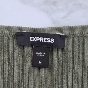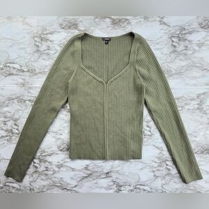 Express ribbed olive green fitted long sleeve sweater with a sweetheart neckline and straight hem.