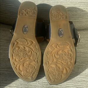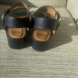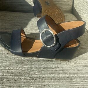 Step out in style with these elegant navy blue sandals. Perfect for any occasion, very comfortable. Adjustable strap with Velcro closure. Excellent condition. Smoke free home